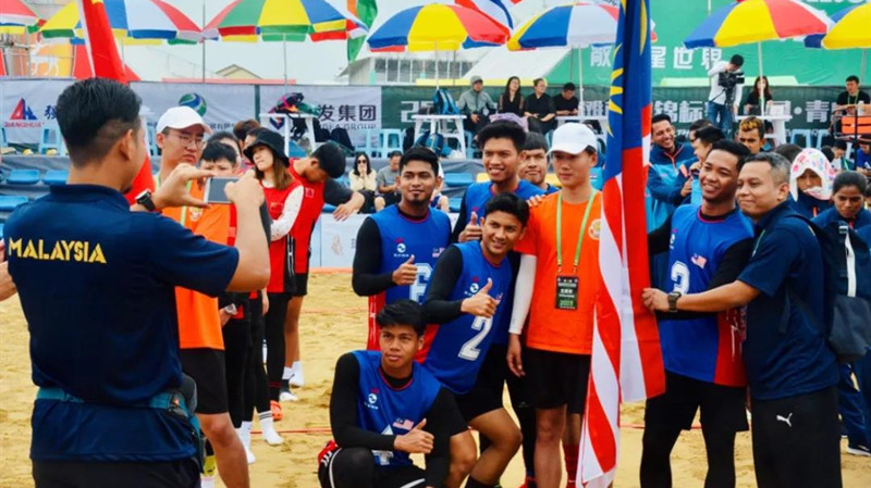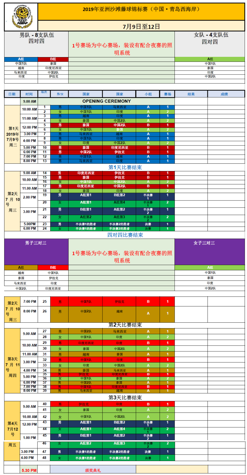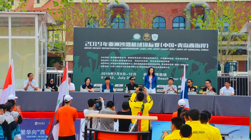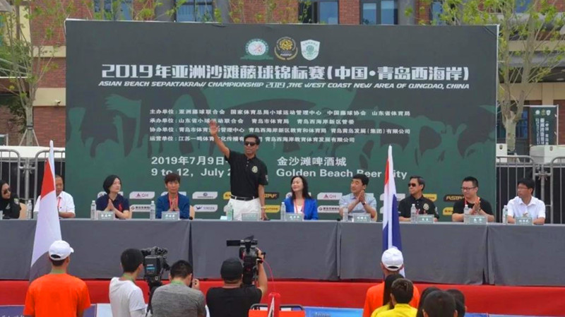 7月9日,2019亞洲沙灘藤球錦標(biāo)賽(中國·青島西海岸)在金沙灘啤酒城開賽。來自中國、越南、泰國、印度尼西亞、印度、馬來西亞、伊拉克7個(gè)國家的12支代表隊(duì)伍將為大家奉獻(xiàn)一場精彩絕倫的視覺盛宴。