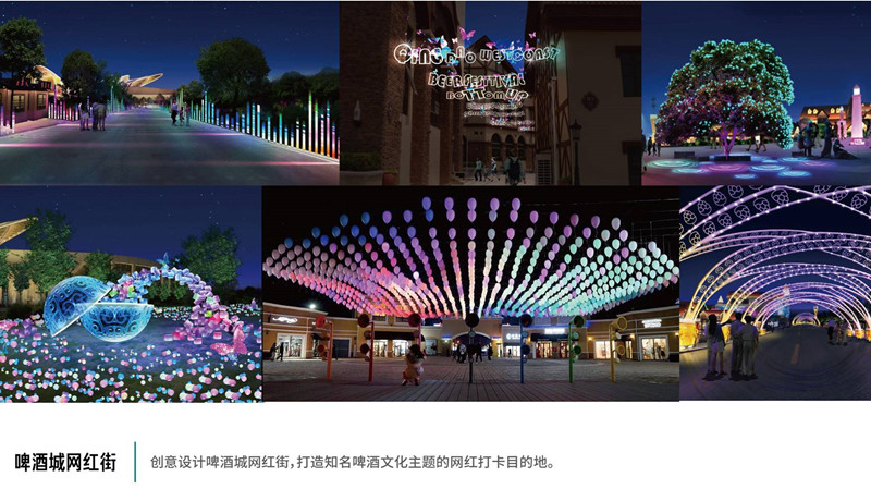 夜幕降臨,華燈初上,音樂(lè)大道、海韻大道、啤酒大道、星光大道美輪美奐,啤酒文化博物館、啤酒花園酒吧街、“啤酒女神”雕塑、金啤精釀體驗(yàn)館彰顯魅力,鳳凰之聲大劇院、啤酒休閑大篷、啤酒花園精釀酒吧街相得益彰,大海、啤酒、美食、音樂(lè)讓人流連忘返,激情、浪漫、時(shí)尚、璀璨不夜城美不勝收,成為青島乃至全國(guó)新的網(wǎng)紅打卡目的地。