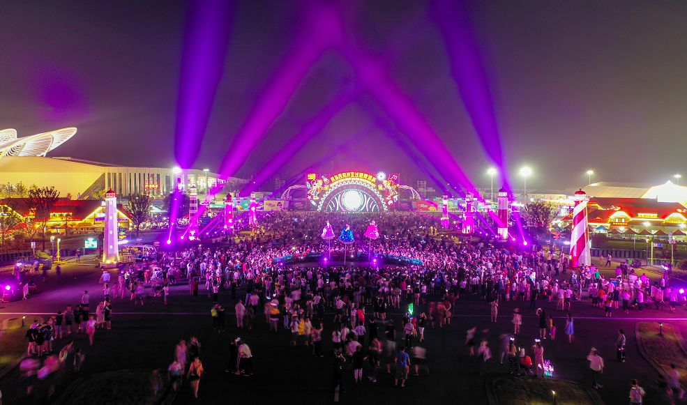 一輛輛流光溢彩的大型花車,載著身著盛裝的表演藝術(shù)家,再次為觀眾帶來絕佳的視覺盛宴;童聲合唱用天籟之音,喚起人們對大海和家鄉(xiāng)的熱愛;快閃表演《我和我的祖國》致敬祖國,為新區(qū)夢添彩;融匯各國文化特質(zhì)的藝術(shù)表演,把現(xiàn)場觀眾帶進全球文化“大觀園”;璀璨的焰火表演一次次將閉幕式推向高潮。