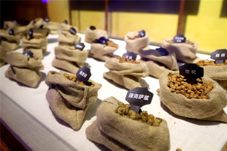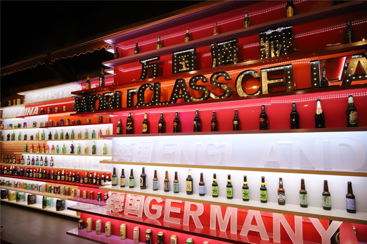 ▲“萬國(guó)酒藏”展區(qū)展出來自世界各國(guó)的上百種啤酒。