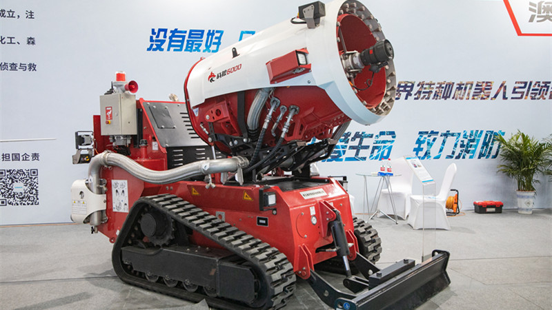 在無人直升機(jī)旁邊,一個(gè)“大塊頭”也被不少人圍觀?!斑@是第一次亮相展會的霧炮消防滅火排煙機(jī)器人?!眲l(fā)德告訴記者,該機(jī)器人是一款集滅火、排煙和偵查功能于一體的多功能消防機(jī)器人,其帶有的多種噴水模式,能夠適用于不同情況下的滅火,可以快速移除火中熱量并降低溫度,從而實(shí)現(xiàn)滅火和排煙功效。