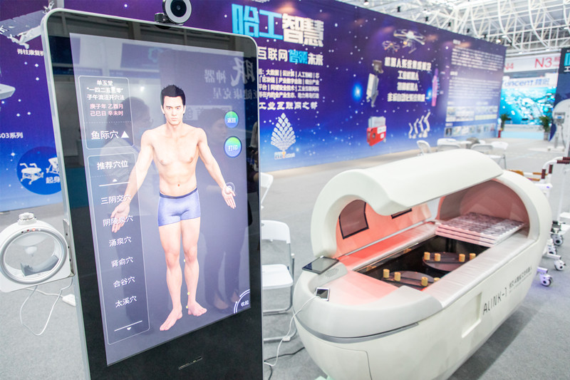 位于海工裝備與海洋科技展區(qū)內(nèi)的哈工大機(jī)器人集團(tuán)展位里,人氣頗旺。哈工(青島)機(jī)器人有限公司哈工智慧市場總監(jiān)劉瑛正一邊演示一邊為大家介紹哈工大最新研發(fā)的機(jī)器人。“我們自主研發(fā)了這套中醫(yī)問診系統(tǒng),這款艾灸機(jī)器人能夠依托傳感技術(shù)進(jìn)行脈診,并通過圖像分析進(jìn)行面診、舌診,搭配體質(zhì)辯診問題庫,生成報(bào)告后傳輸?shù)皆贫诉M(jìn)行數(shù)據(jù)分析,會生成艾灸診療方案,機(jī)器人會根據(jù)方案通過點(diǎn)對點(diǎn)穴位為人體進(jìn)行調(diào)理。”