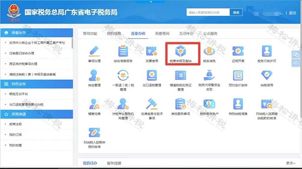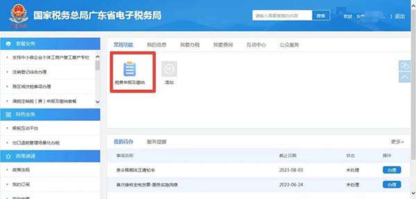 納稅人可登錄電子稅務(wù)局,點(diǎn)擊首頁(yè)左邊“常用功能—稅費(fèi)申報(bào)及繳納”模塊,或點(diǎn)擊“我要辦稅—稅費(fèi)申報(bào)及繳納”。