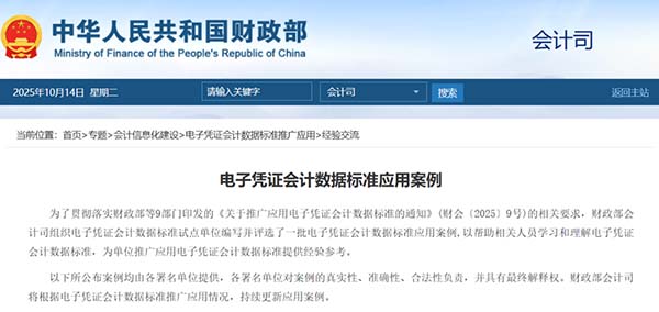據(jù)石家莊用友了解今年5月,財政部等九部門聯(lián)合發(fā)布《關(guān)于推廣應(yīng)用電子憑證會計(jì)數(shù)據(jù)標(biāo)準(zhǔn)的通知》,正式宣告電子憑證會計(jì)數(shù)據(jù)標(biāo)準(zhǔn)將在全國范圍內(nèi)推廣應(yīng)用。近日,財政部會計(jì)司公布了首批應(yīng)用案例,為各單位學(xué)習(xí)理解和應(yīng)用新標(biāo)準(zhǔn)提供了實(shí)踐參考。這標(biāo)志著我國財稅無紙化進(jìn)程進(jìn)入全面加速階段。