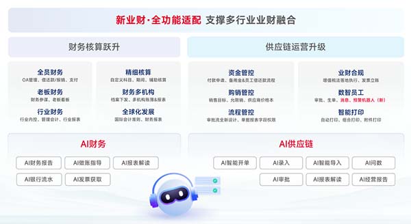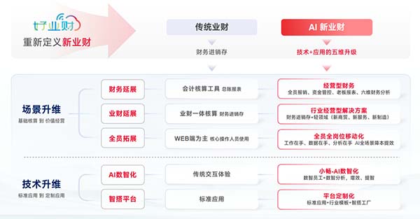 值此關(guān)鍵節(jié)點,暢捷通發(fā)布好業(yè)財AI新業(yè)財,通過“技術(shù)+應(yīng)用”的五維升級,開啟從“傳統(tǒng)業(yè)財”到“AI新業(yè)財”的深刻變革,重新定義財務(wù)進銷存,賦能企業(yè)邁向智慧經(jīng)營新紀元。