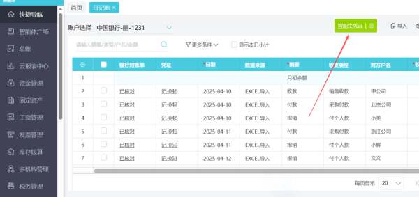 資金流水自動生成憑證