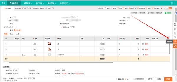 1、新增銷(xiāo)貨單時(shí),點(diǎn)擊右側(cè)的回形針【