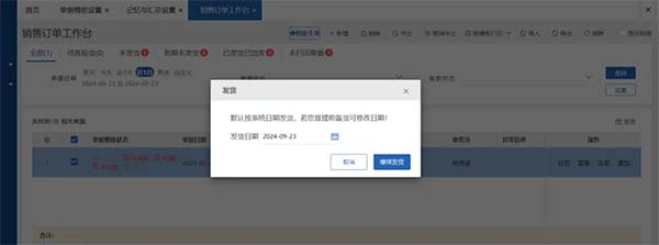 【產(chǎn)品解決方案】銷售管理-銷售訂單工作臺對單據(jù)進行發(fā)貨時可支持選擇發(fā)貨日期