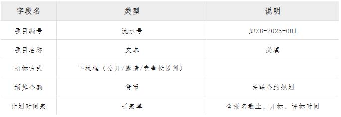 命名:招標(biāo)項(xiàng)目主表
