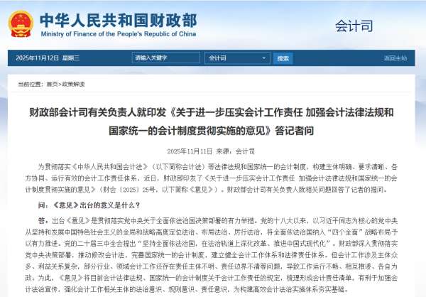 這次財(cái)政部發(fā)布的《關(guān)于進(jìn)一步壓實(shí)會計(jì)工作責(zé)任 加強(qiáng)會計(jì)法律法規(guī)和國家統(tǒng)一的會計(jì)制度貫徹實(shí)施的意見》(以下簡稱《意見》),堪稱會計(jì)行業(yè)的「責(zé)任重塑指南」—— 老板、會計(jì)、軟件商全覆蓋!千萬別理解為只是我們會計(jì)的工作責(zé)任,而是三方共同歸位盡責(zé)!